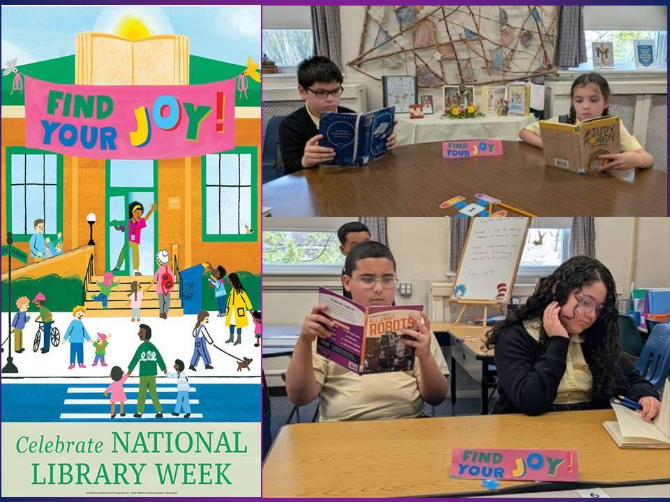 Across the country, April 19th through the 25th, libraries are celebrating National Library Week. Our students will celebrate the week with this year’s theme - “Find Your Joy!” by exploring the joy of reading with special activities and learning about the Caldecott and Newbery Medal Awards for children’s books sponsored by the American Library Association. Students will also “find their joy” in the book they choose to check out from the library.